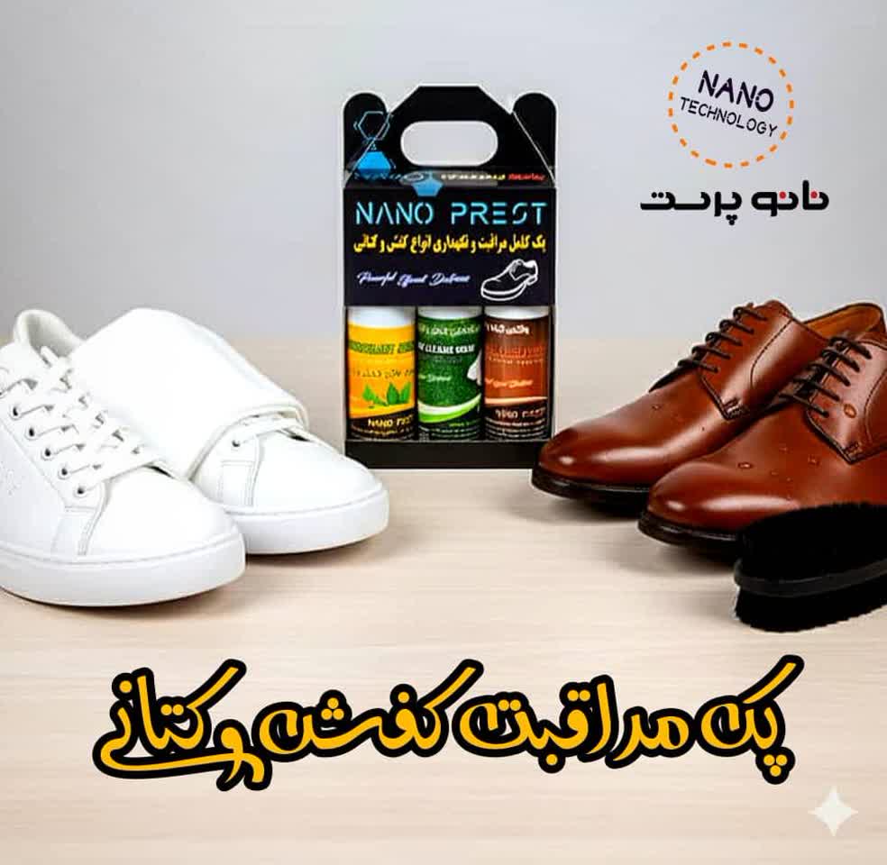 پک نانو اسپری بوگیر کفش و پا 2️⃣ اسپری پاک‌کننده کفش/کتانی 3️⃣ واکس و پولیش نانو (براق + محافظ)